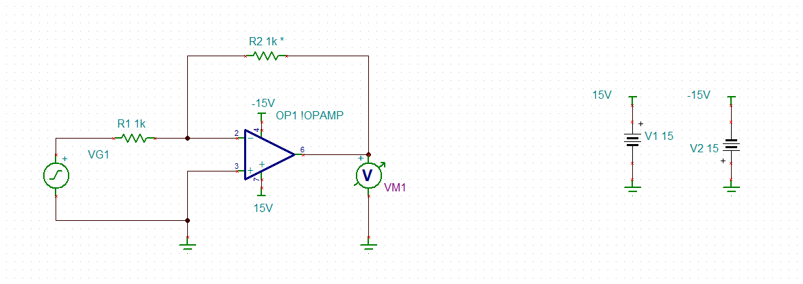 간단한 반전 증폭기 회로를 준비해봤습니다.