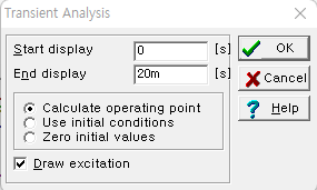 시뮬레이션은 원래 하듯이 Analysis → Transient 를 클릭하시면 됩니다.
