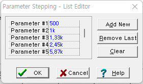 이제 Parameter Stepping 창에서 이렇게 원하는 값을 설정하면 된답니다!!
