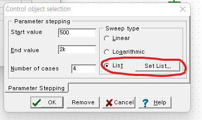 대신 저항 같은 수동 소자의 Value를 Sweep 하는 방법이 있지요.